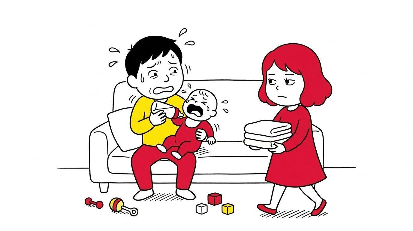 赤ちゃんが、夜の寝かしつけのときだけパパからのミルクを飲みません。ママからは問題なく飲んでいて、朝や昼はパパからでも飲んでくれるのですが、なぜか夜だけうまくいかないんです。