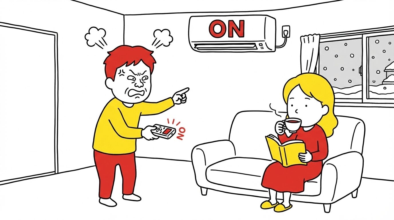 その後、誰も使っていないはずの寝室の空調が、長時間ついたままになっていることに気づきました。結果的に、かなりの時間その状態が続いていたようです。