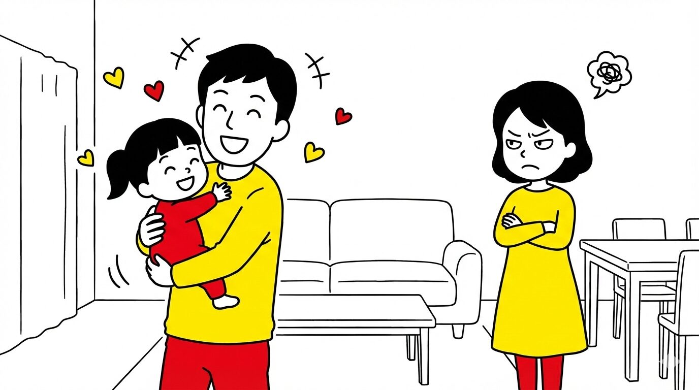 そうした中で、娘が私を求める場面が続きました。娘が「パパがいい」と言って甘えてくると、妻の表情や態度が変わり、距離を取るように一人で別の部屋へ行ってしまいました。